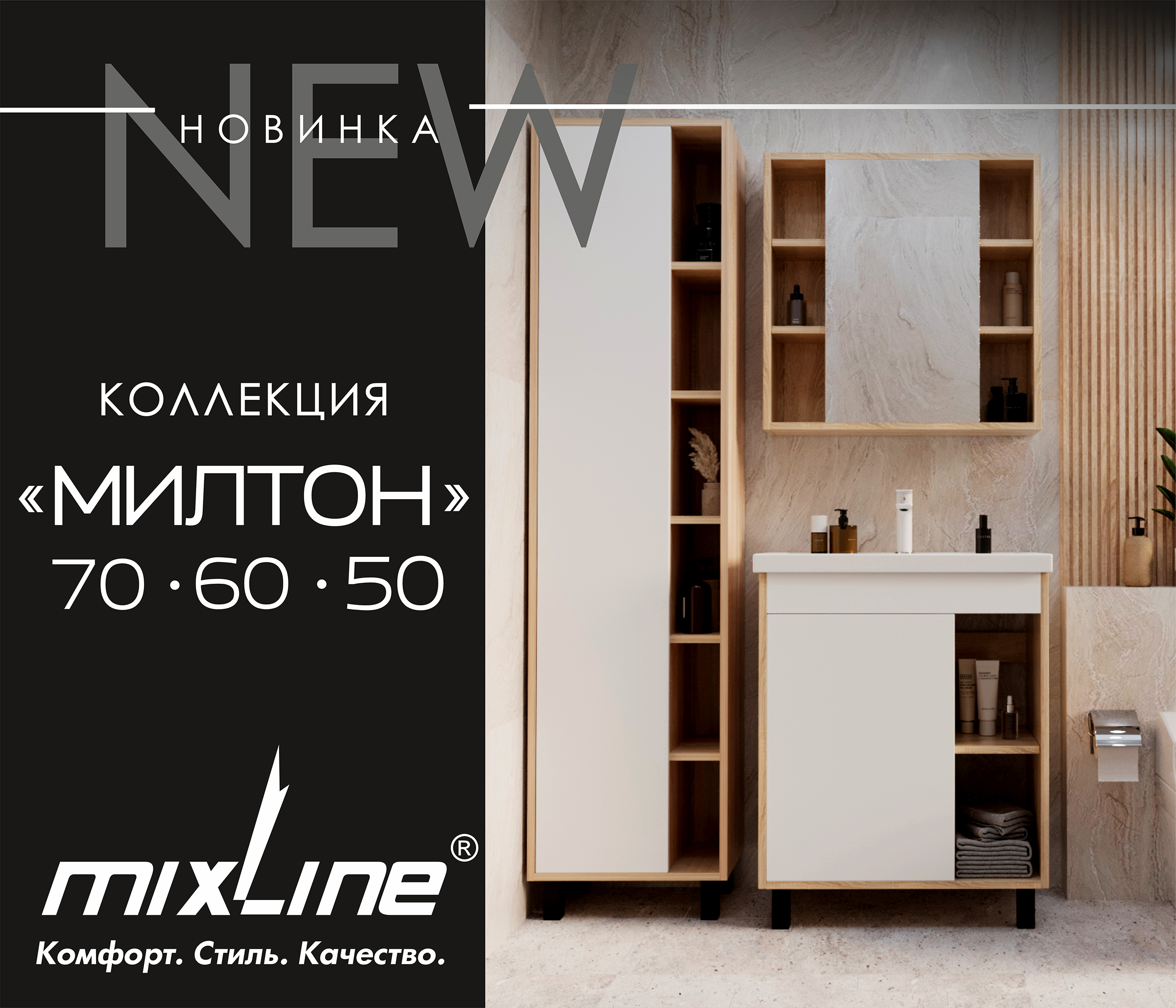 Рады сообщить вам о новой серии мебели для ванной комнаты от бренда MIXLINE - серия 'МИЛТОН'!