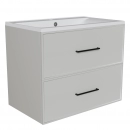 Тумбы под раковины Вилис (Valleri) шириной 65 и 80 см. Пенал имеет 1 створку и 2 выдвижных ящика. Направляющие – скрытого монтажа с доводчиком. Цвет внутри – белый/дуб Интра. Для серии доступны черные опоры (арт. 558851).