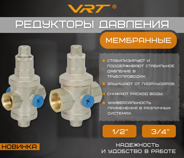 Бренд VRT представляет дополнение к ассортименту оборудования для инженерных систем - мембранные редукторы давления.