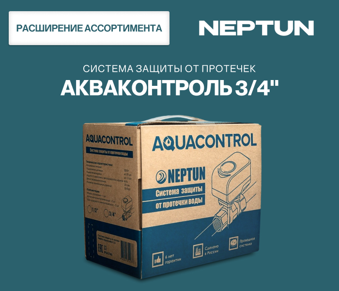 В линейке систем защиты от протечек воды появилась модель от бренда NEPTUN - Aquacontrol 3/4''.