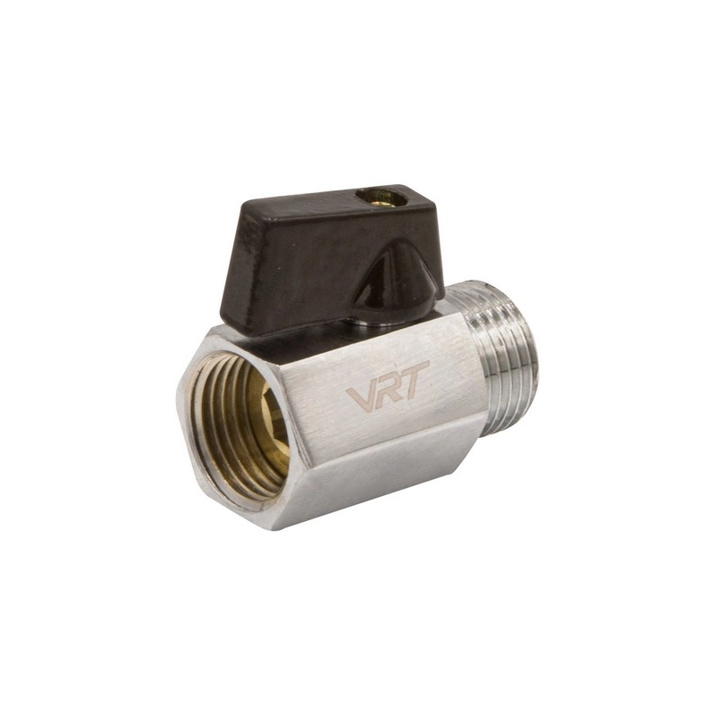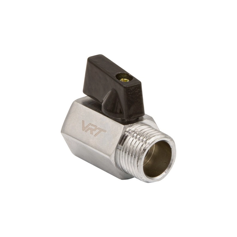 Кран шаровый тм VRT является полнопроходным и ремонтопригодным. Обладает увеличенным ресурсом. Корпус – латунный, никелированный. Кран шаровый оснащен усиленной стальной рукояткой флажкового типа в травмобезопасном исполнении (увеличены рабочий зазор и толщина пластины, предусмотрено теплоизоляционное покрытие из ПВХ).