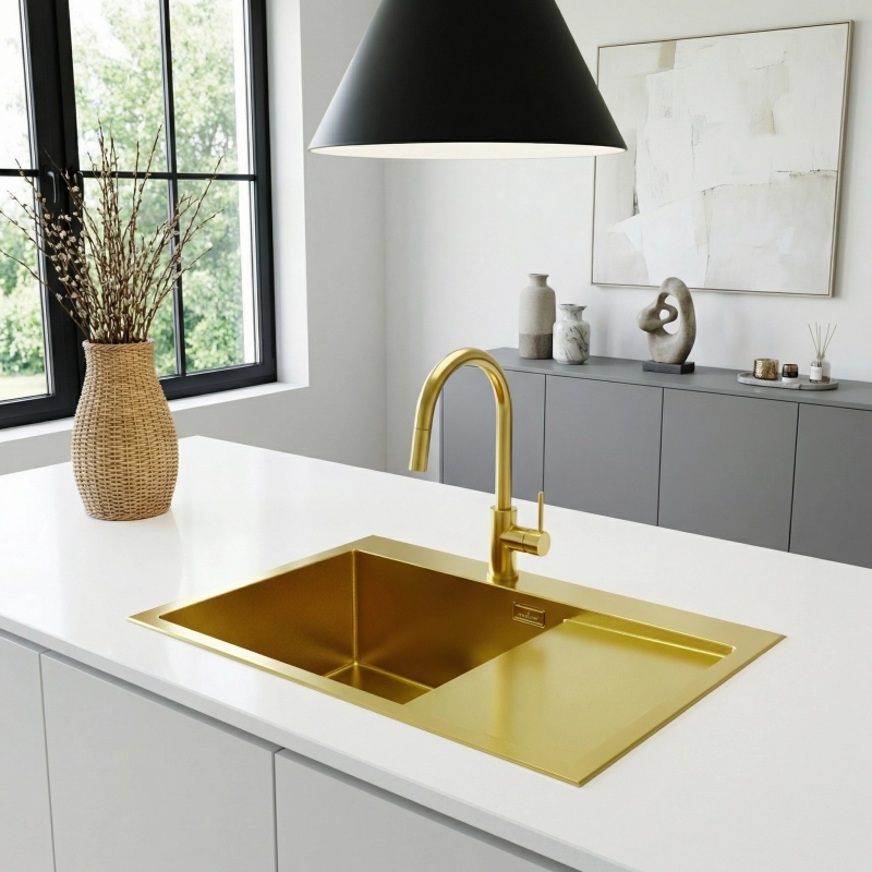Мойка имеет защиту от кислотосодержащих составов. Поверхность не изменится по фактуре, так как PVD покрытие надежно соединилось с кристаллической решёткой изделия.