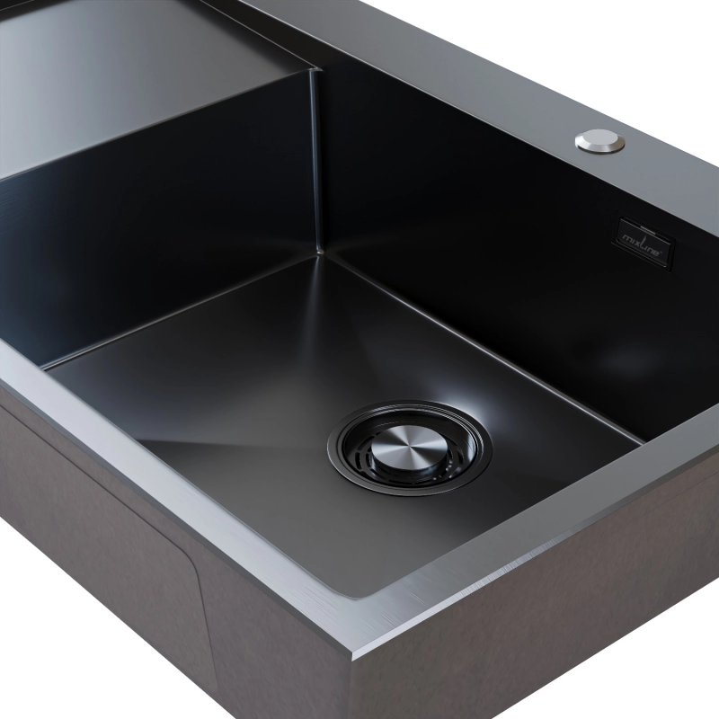 Мойка настол.монтаж 78х50 (3,0) прав. вып 3 1/2 MIXLINE ПРО С ФАСКОЙ 20см с сифоном (черный графит)