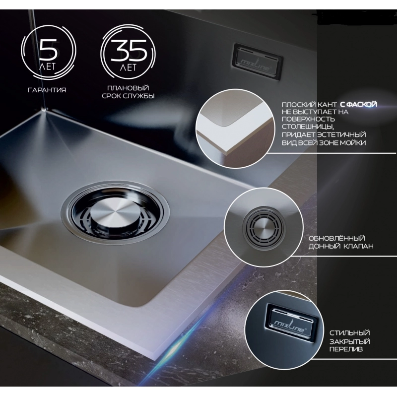 Гарантия на мойки MIXLINE ПРО - 5 лет.