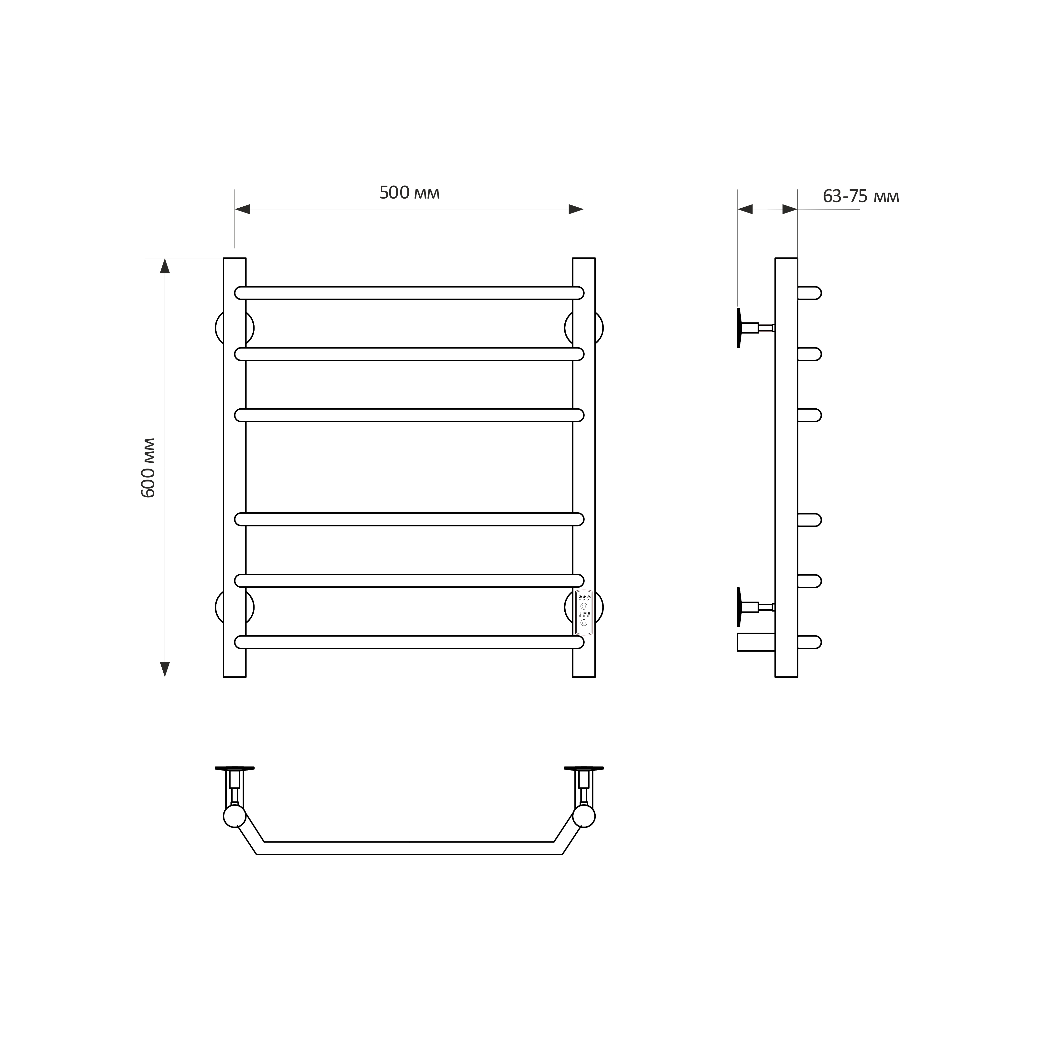 Полотенцесушитель MIXLINE МИРА 60х50 (таймер, 268 Вт, 6 перекладин) электрический ЧЕРНЫЙ