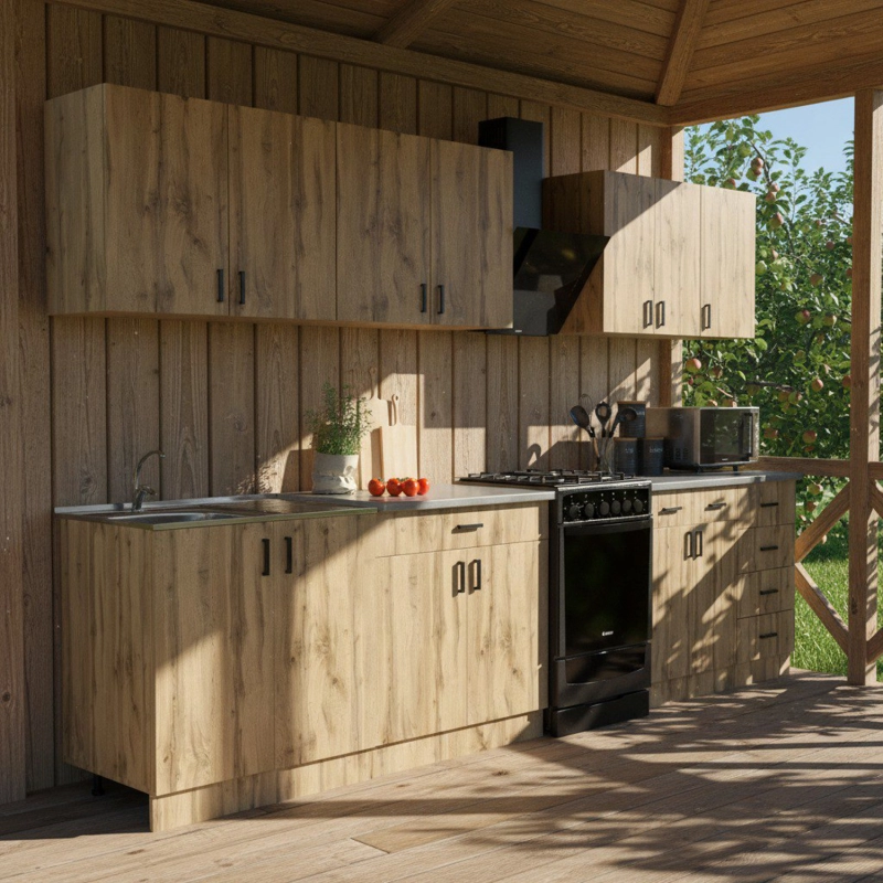 - Столешница глубиной 600 мм, высотой 28 мм (что совпадает с высотой накладной мойки)