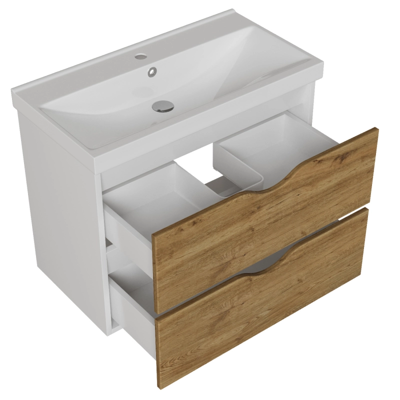 Серия мебели для ванной «АМУР» от бренда MIXLINE – это функциональное и современное решение для организации пространства. Модели выполнены в актуальном цветовом решении: снаружи – белый/дуб Секвойя, внутри – белый. Фасады из МДФ с глянцевым покрытием пленкой ПВХ устойчивы к влаге и легко очищаются. Корпус изготовлен из влагостойкой ЛДСП, что обеспечивает долговечность. Мебель поставляется в собранном виде.