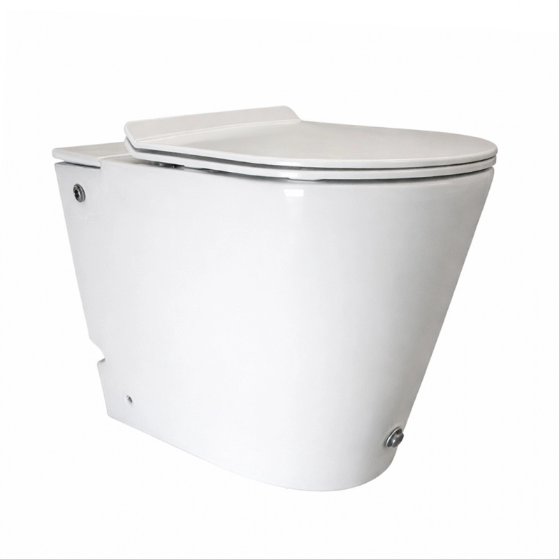 Унитаз приставной импульсный безободковый WAVE - современное решение для ванной комнаты, которое сочетает в себе стильный дизайн и высокую функциональность.