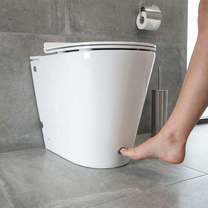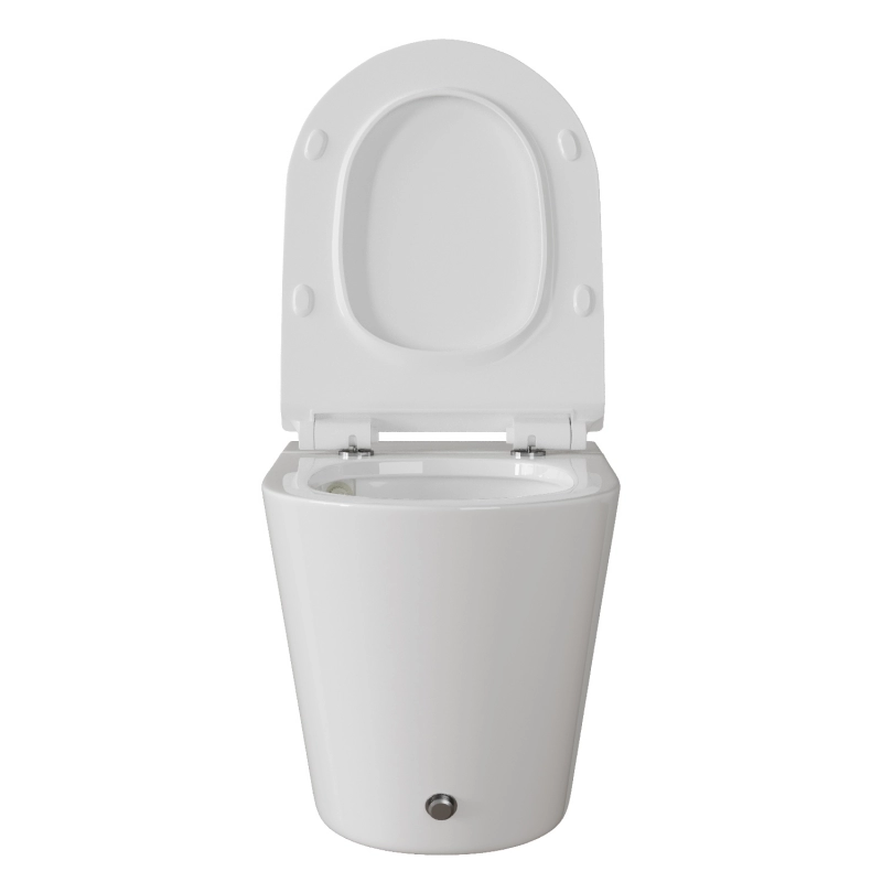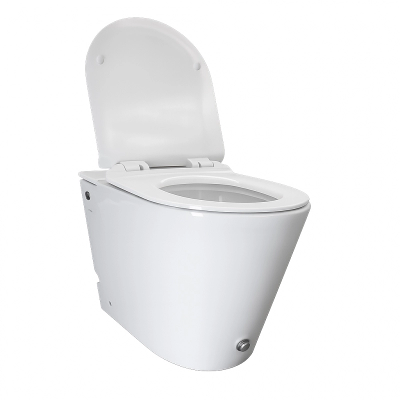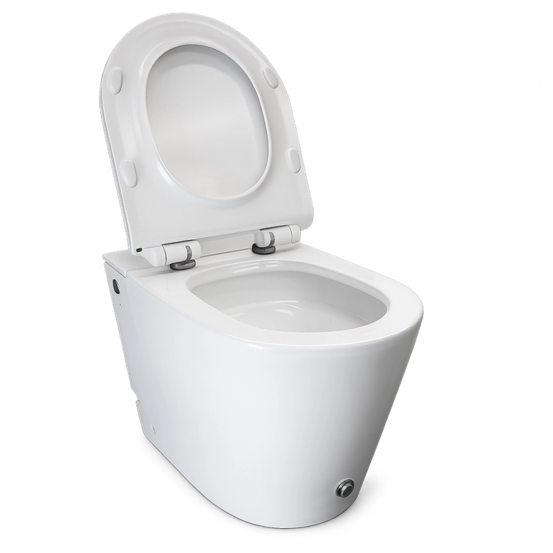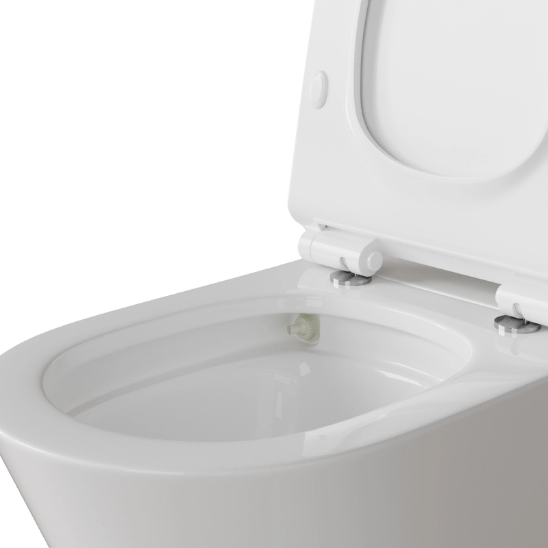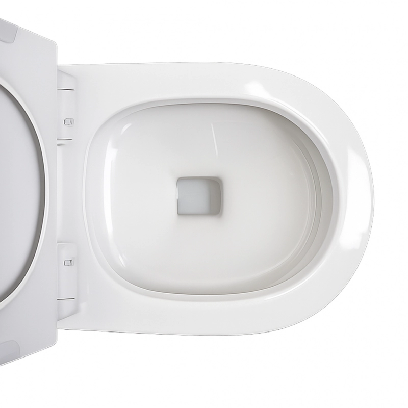 • Безободковая чаша — исключает труднодоступные зоны, предотвращает скопление бактерий и упрощает уход.
