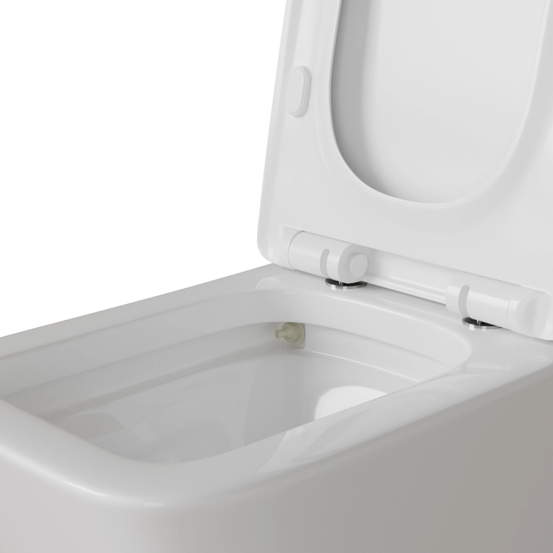 • Безободковая чаша — исключает труднодоступные зоны, предотвращает скопление бактерий и упрощает уход.
